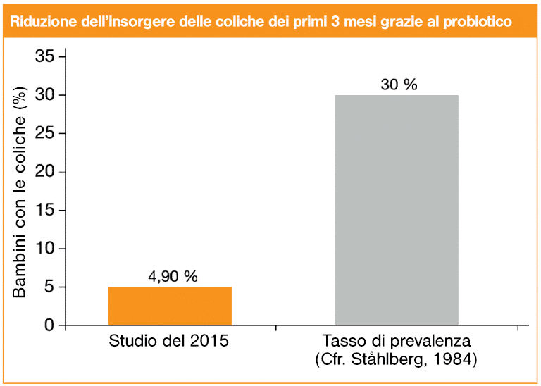 Infine , l’intestino del bambino può essere supportato con speciali batteri probiotici, molto efficaci. Uno studio, in cui i neonati hanno assunto un probiotico nei primi 4 mesi di vita, ha dimostrato che la durata del pianto nei neonati è diminuita in modo significativo. Dei bambini che hanno preso parte allo studio, solo il 4,9 % presentava episodi di pianto eccessivo (disturbi della regolazione), mentre solitamente circa un bambino su tre soffre di questo disturbo. Anche i bambini più inclini ai disturbi della regolazione per predisposizione familiare non sono stati colpiti più frequentemente da pianto eccessivo o da coliche (Hofmann, 2018). Inoltre, se la mamma evita di mangiare alimenti che le possono causare problemi di digestione, potrà contribuire a diminuire il meteorismo nel bambino. Infatti, se la mamma allatta e lei stessa soffre di meteorismo e ad esempio consuma prodotti caseari o contenenti lievito, è molto probabile che anche il neonato soffra dello stesso disturbo. Alimentiamoci secondo il motto: se sto bene io, sta bene anche il mio bambino!